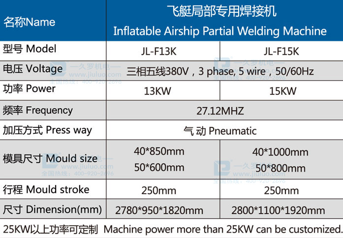 久羅飛艇局部專用焊接機